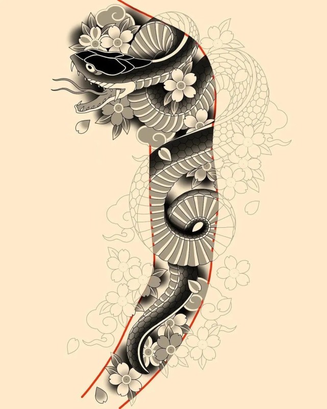 老传统花臂纹身手稿