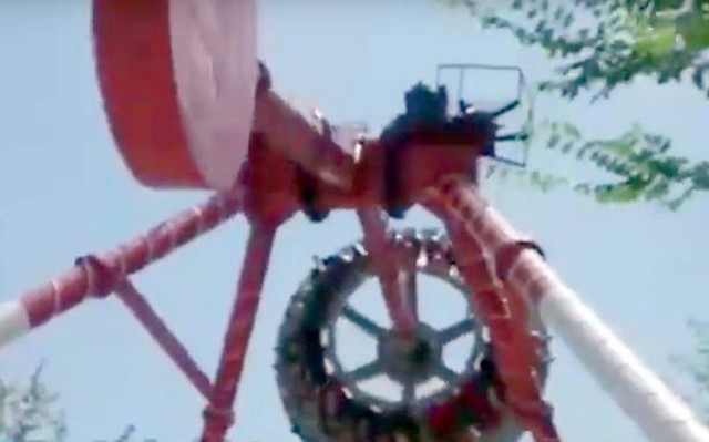 从视频中可以看到,一开始,在欢快的背景音乐下,游客们被安全设备牢牢固定在圆形座舱里,随着座舱的旋转和主轴的360°摆动,惊叫连连,欢声不断。然而,他们的笑声很快转为哀嚎。在又一次上升时,大摆锤的中轴骤然断裂,金属平衡轴被一分为二,承载着数十名游客的座舱狠狠地砸到了地上。