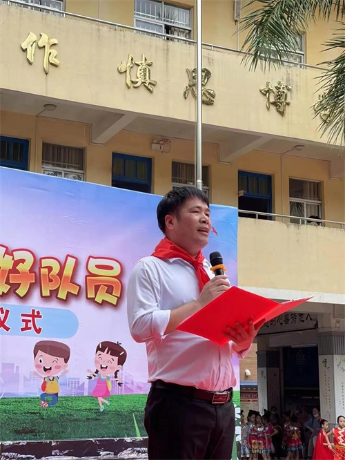 学校党支部书记、校长、少工委主任陈家泰在讲话中激励队员们:党团队一脉相承,薪火相传,入队、入团、入党,是追求进步的“人生三部曲”,加入光荣的少先队,是人生政治生活中的第一件大事。希望队员们时刻听党话,永远跟党走,牢记习爷爷教导,努力成长为担当民族复兴大任的时代新人!他还希望中队辅导员们能继续做好党的少年儿童思想政治工作者,做少先队员亲密的朋友和指导者。