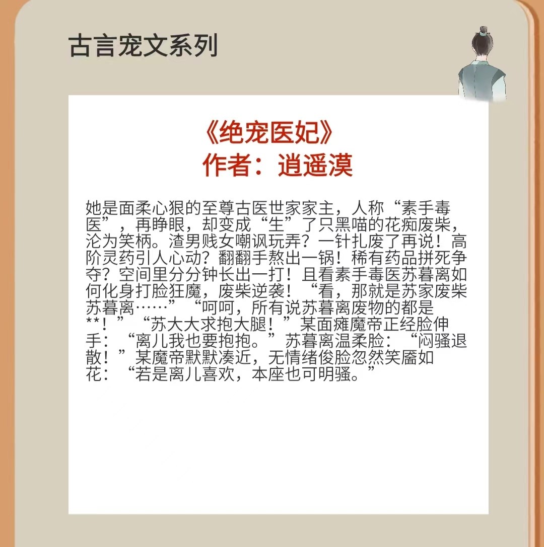 四、《绝宠医妃》 作者:逍遥漠