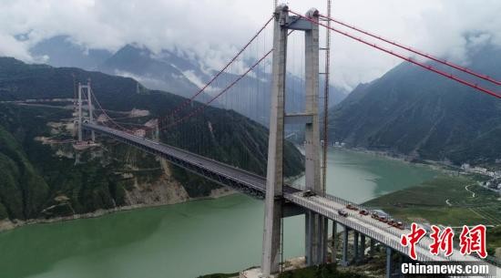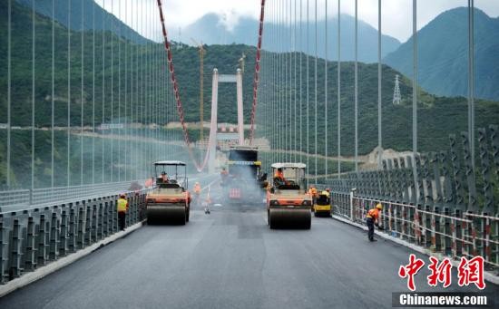 “川藏第一桥”桥面已完成半幅路面柏油铺设。