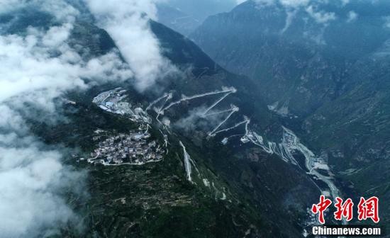 空中俯瞰雅康高速泸康段大杠山隧道建设的便道公路24道拐。