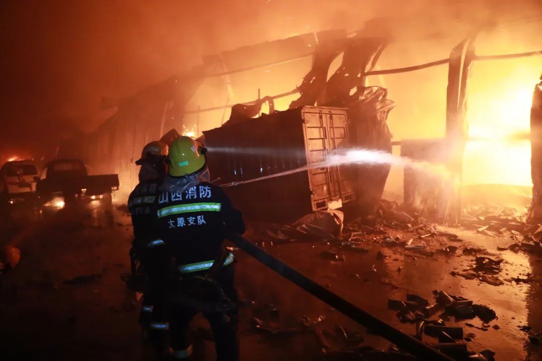 山西太原:东坪村一日化品仓库发生火灾 消防指战员彻夜扑救