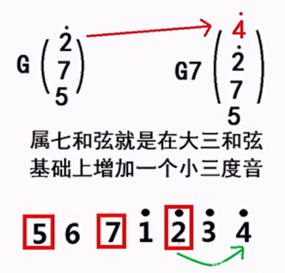 属七和弦就是在大三和弦的基础上增加一个小三度音