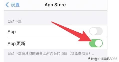 3、关闭appstore中自动下载app更新选项。app的更新速度很快,同时手机有那么多的app,他们在后台自动更新,试想手机能不耗电吗?设置方法:设置中找到appstore选项,点进去找到app下载选项关闭,然后找到app更新选项,点进去关闭app更新就可以了。