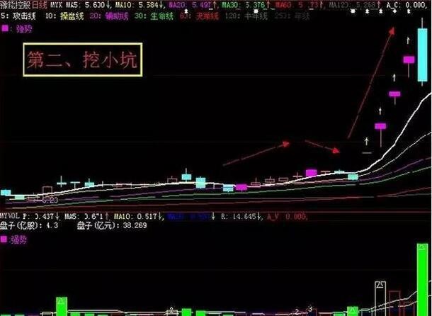 第二种形态可以比喻为助跑起跳,由于时间较仓促,主力先小幅拉高吸货,之后进行简短的打压洗盘,随后开始主升浪。