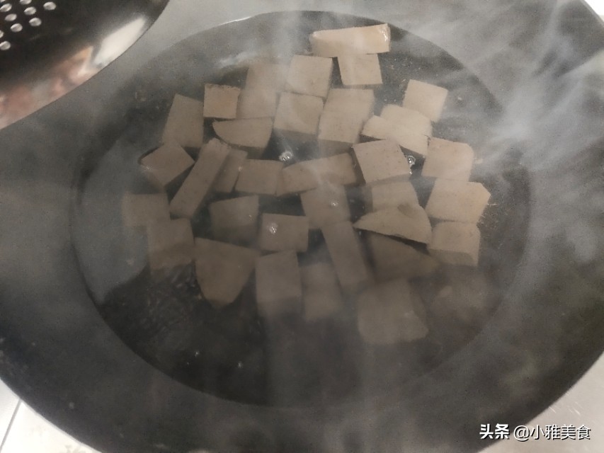2.焯羊血的清水中加点盐,可以防止炒羊血时太烂。