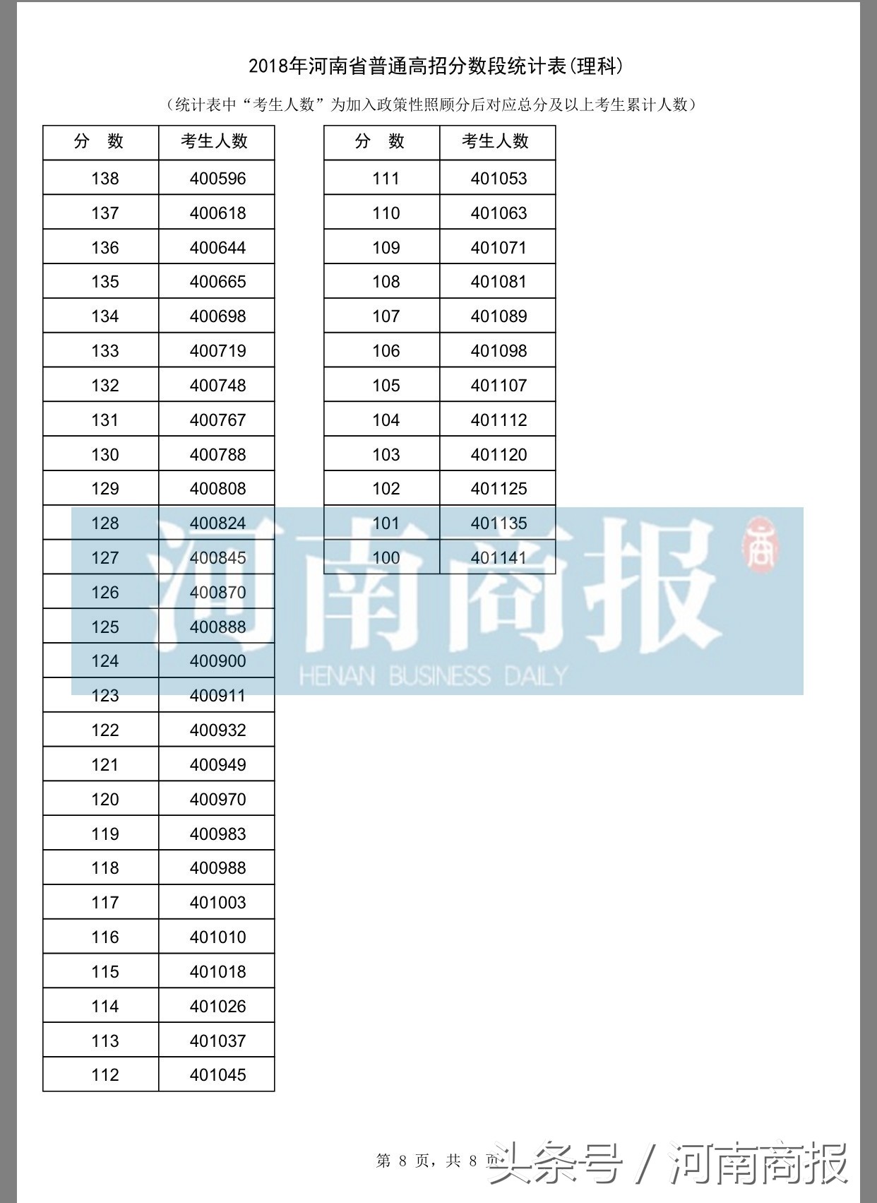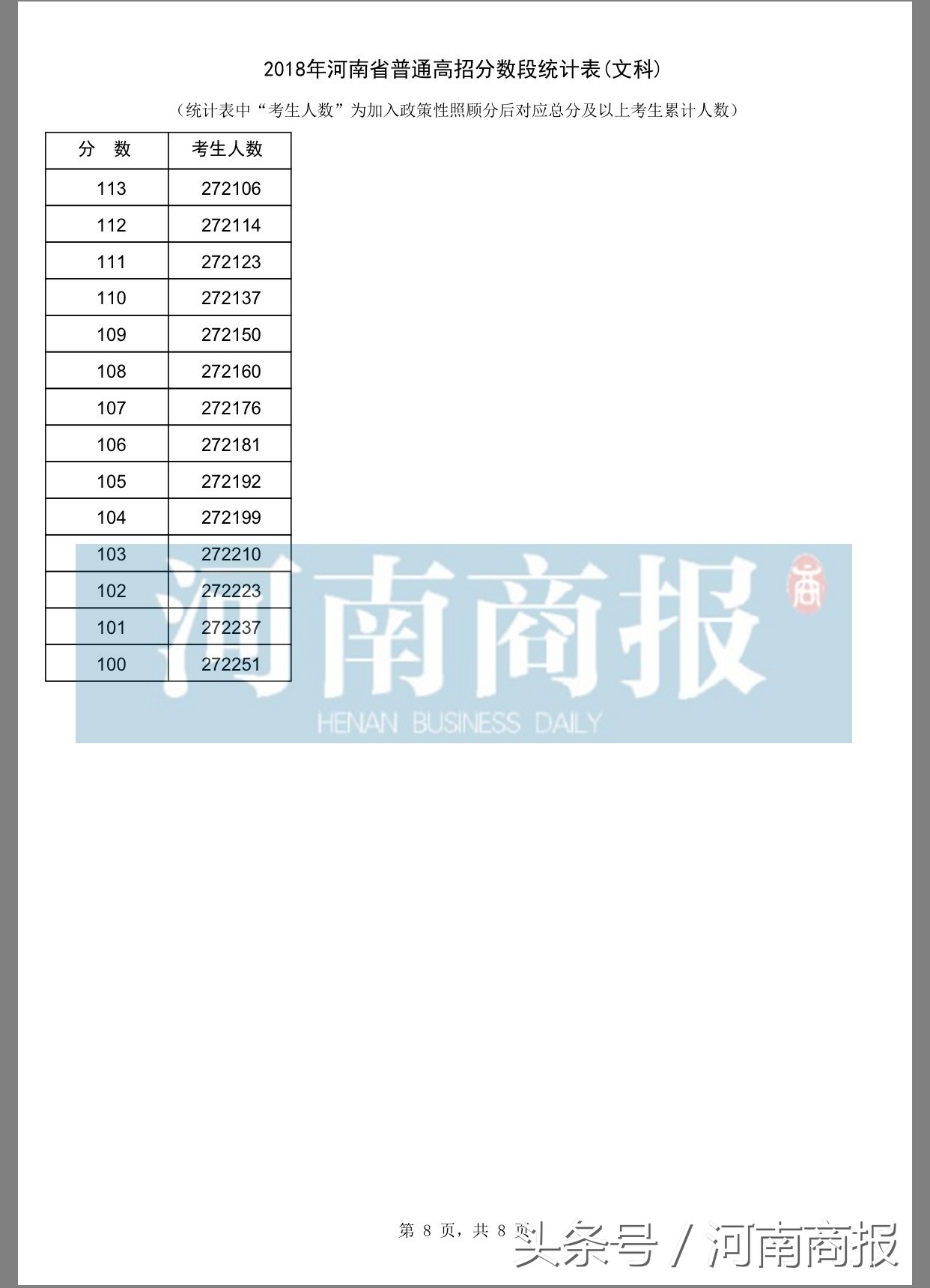 其中的“考生人数”,为加入政策性照顾分后对应总分及以上考生累计人数。
