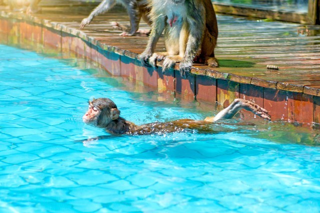 在自然环境中,一些猴子表现出在水中游泳的行为。比如,在非洲的一些地区,长臂猿会在水中游泳以追逐食物或穿越河流。此外,实验室中的研究也表明,猴子在经过训练后,能在水中完成一定的游泳动作。