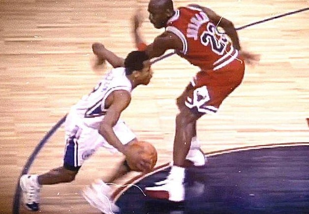 不过,如果说乔丹最想删掉的一张照片,还是当年被新秀艾弗森晃过的尴尬场面了。当时赛前乔丹就放狠话,要亲自教育一下这个不知天高地厚的新秀,但是结果在对位时却被对手轻松晃过,当时乔丹估计很久没有这么狼狈过了,被一位新秀挑衅、结果对位时还被他晃过,对于好胜心极强的乔丹来说,这副世界名画,无疑想让所有篮球迷们从脑海里删掉。(ikuet)