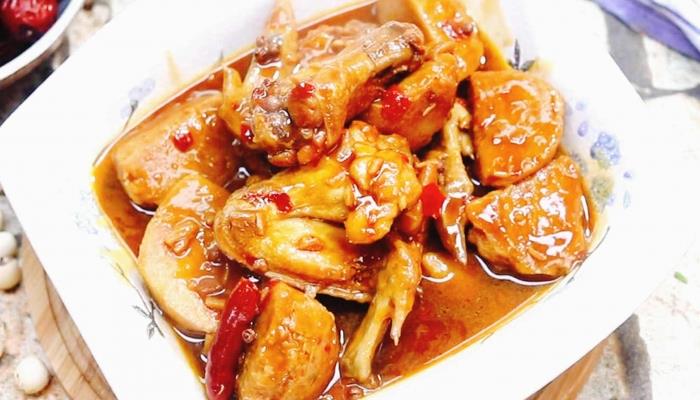 香芋烧鸡是一道家常菜,主料是芋头、鸡,配料是葱、姜、蒜等,调料为豆瓣酱、食盐等,通过红烧的做法而成。
