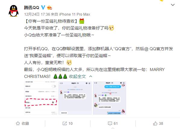 接着@QQ官方 我要圣诞帽即可立即得到一顶头像圣诞帽!
