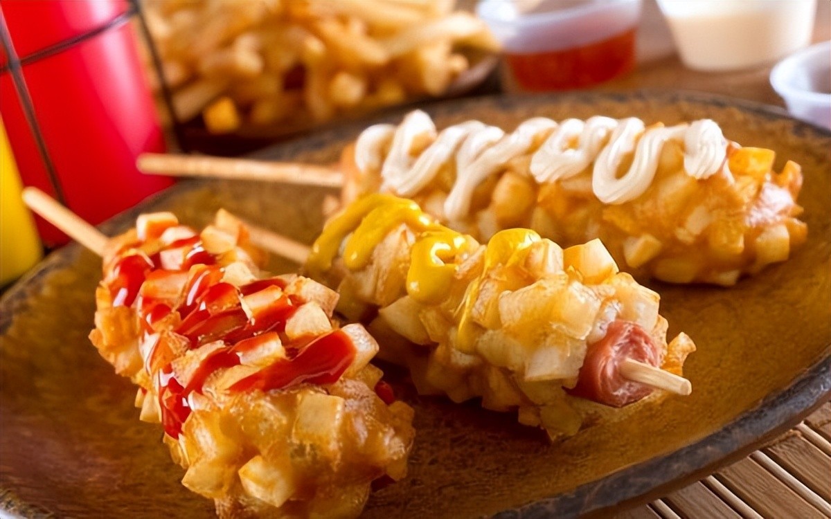 说起韩国Kogo,可能很多人都比较陌生,但如果说这是热狗和薯条的结合体,就显得无比熟悉了。韩国热狗是美国热狗的一种特殊变体,它涂有一层薄薄的面团,然后在一层土豆上卷起来,然后油炸。很简单,但它们是许多人沉迷的一道菜。韩国Kogo是一道起源于韩国街头食品的菜肴。当你享用这道菜时,咬一口脆脆的,你会在嘴里感受到士豆天然的甜味、一点点奶酪和香肠的美味。很多来韩国的游客,一定会找到并品尝一次这种韩国古果的正宗味道。