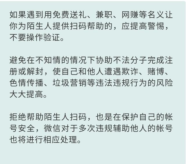 但也不是说以后就不能使用微信解封功能了哦,正常朋友之间进行安全辅助验证,属于正常合规行为。