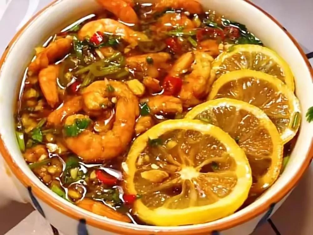 (4)最后倒入去好壳的虾肉,搅拌均匀,放进冰箱冷藏2个小时风味更佳,好吃热量低
