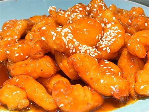 《食材准备》里脊肉300g、淀粉、熟芝麻少许、白糖20g、料酒10g、白醋20g、生抽5g、豆油少许、盐2g、番茄酱20g