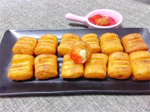 准备一些番茄酱蘸着吃,味道更佳,咬开首先感受到酥脆的外壳,然后是绵软有嚼劲的香醇口感,酸酸甜甜超级棒