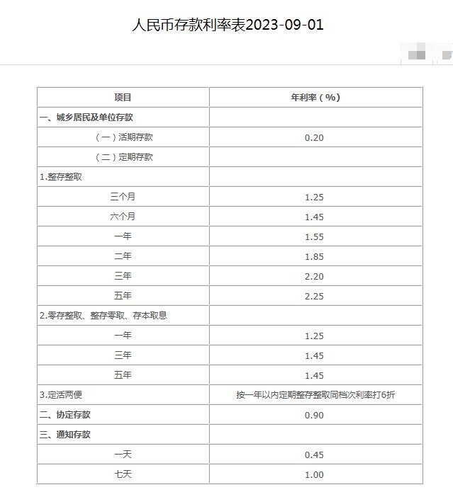 建设银行定期存款利率表