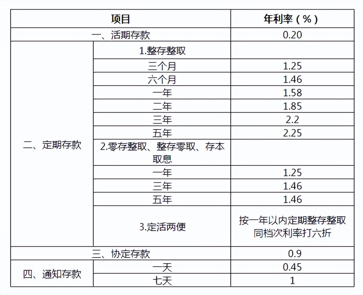 邮政银行定期存款利率表