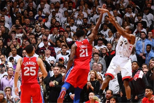 “当时就在这里发生了,当莱昂纳德带领猛龙队打入东部决赛时,他就站在莱昂纳德右边的角落里。”时间还剩4.2秒,莱昂纳德来到底角,本-西蒙斯漏掉了莱昂纳德,使得莱昂纳德直面乔尔-恩比德的防守,投出了一记高弧线投篮,经过四次弹跳之后,最终落入了篮筐。”