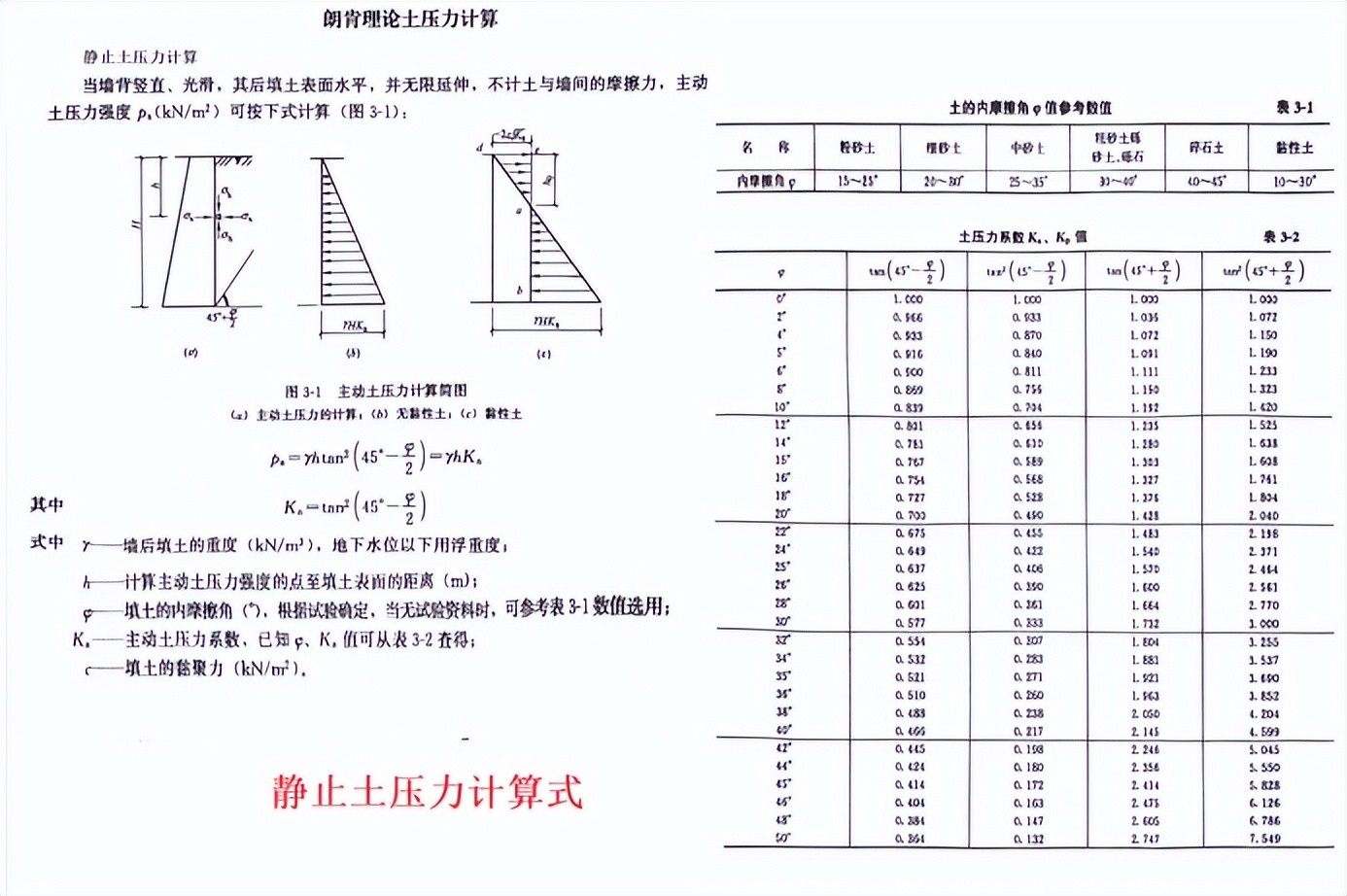 2)静止土压力计算公式