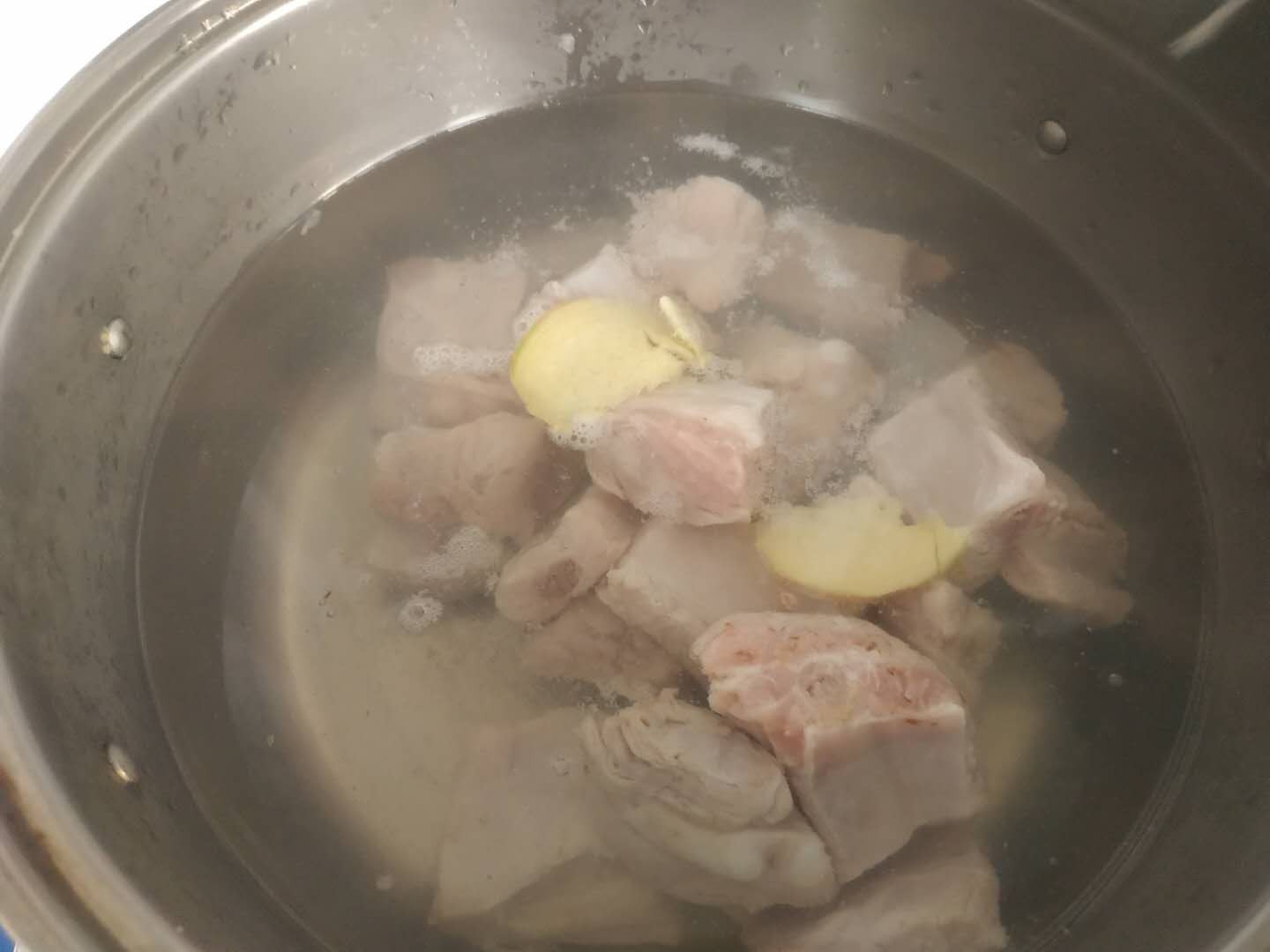 做法:1,猪小排骨切成小段,凉水下锅焯水,放jiang2片,料酒一勺。去掉上面一层血沫,再用温水冲洗一下备用。