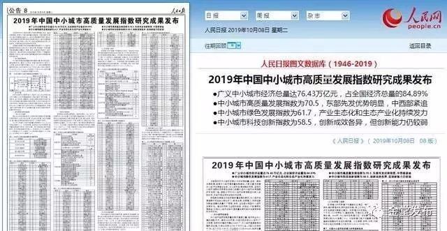 《人民日报》和中国中小城市网发布
