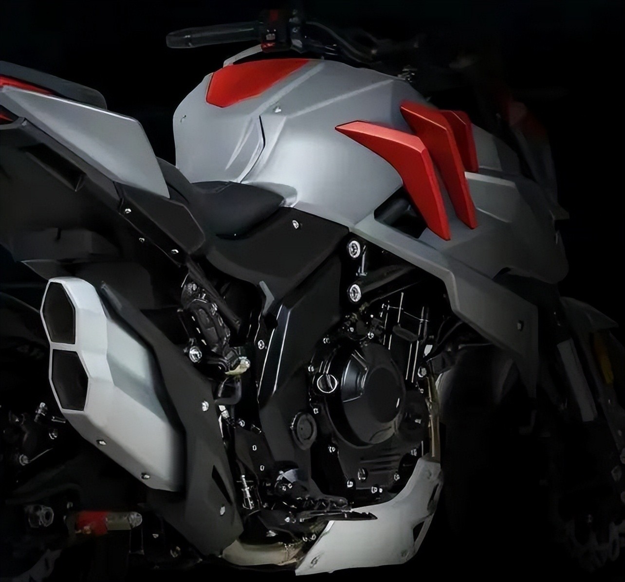 外观方面,这款命名为天蝎500的街车,张力十足的驼峰式座椅,背面复有头晌甲,左右獠牙大开不怒而威,独树一帜自成一派。整车线条在光线下透着棱角分明的冷峻,轮廓清晰而富有肌肉张力。混和了一个类似于雅马哈MT系列车型的设计元素,装配了一个很有科幻感的光点大灯,使得整车看起来非常的运动。