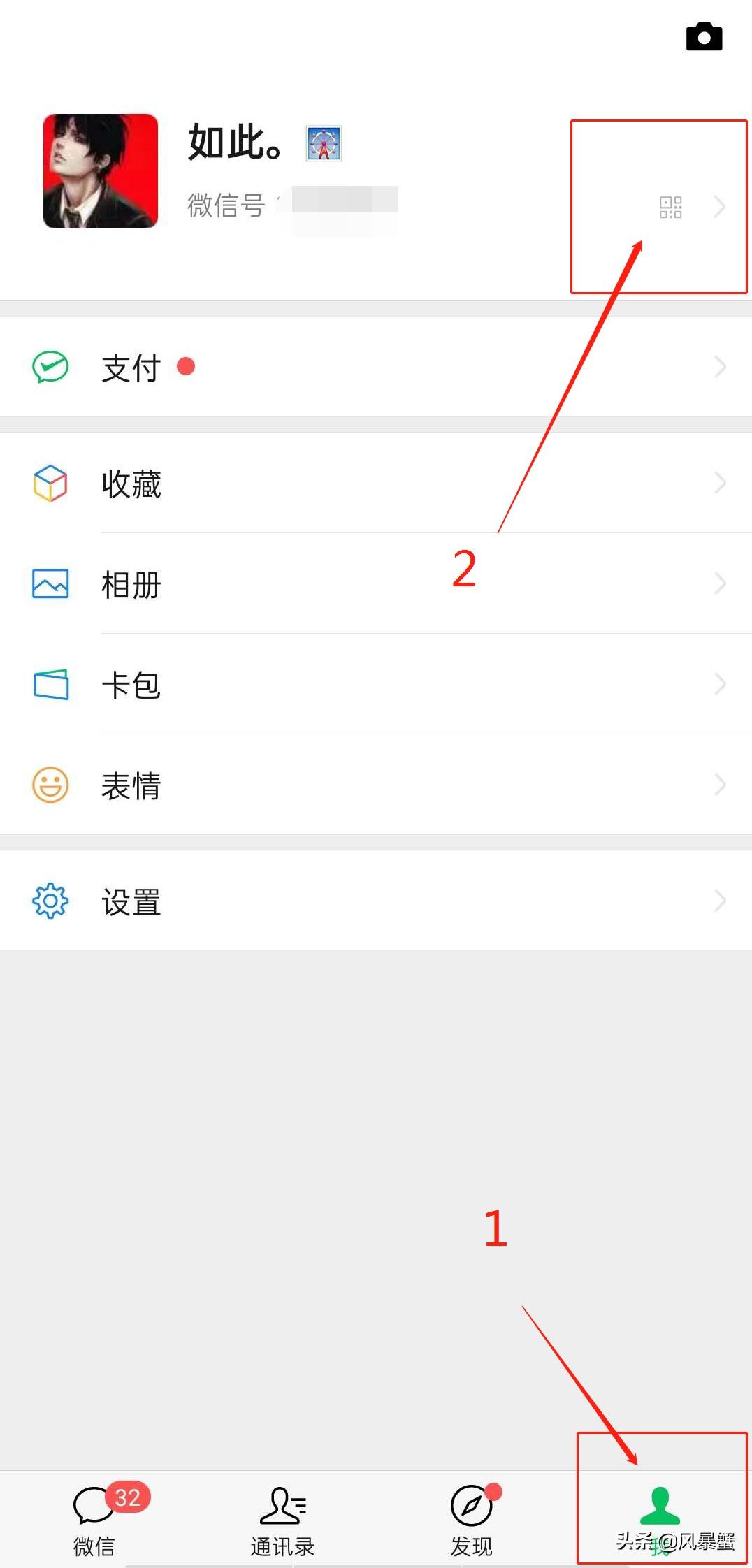 接着点击头像右边的带二维码的箭头,进入设置