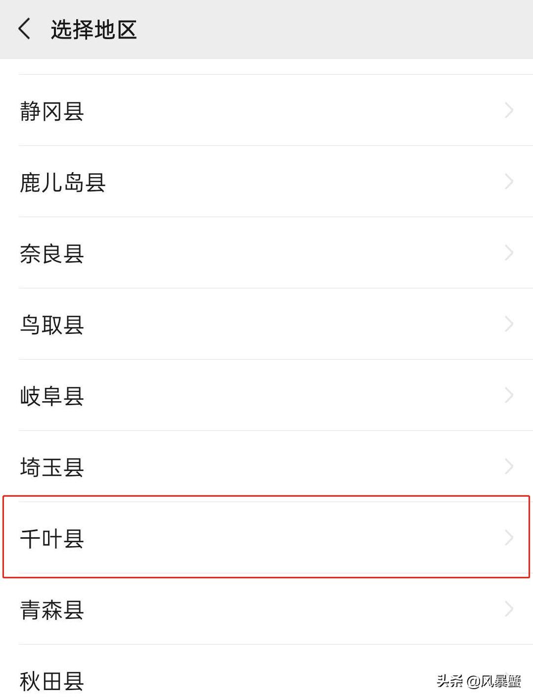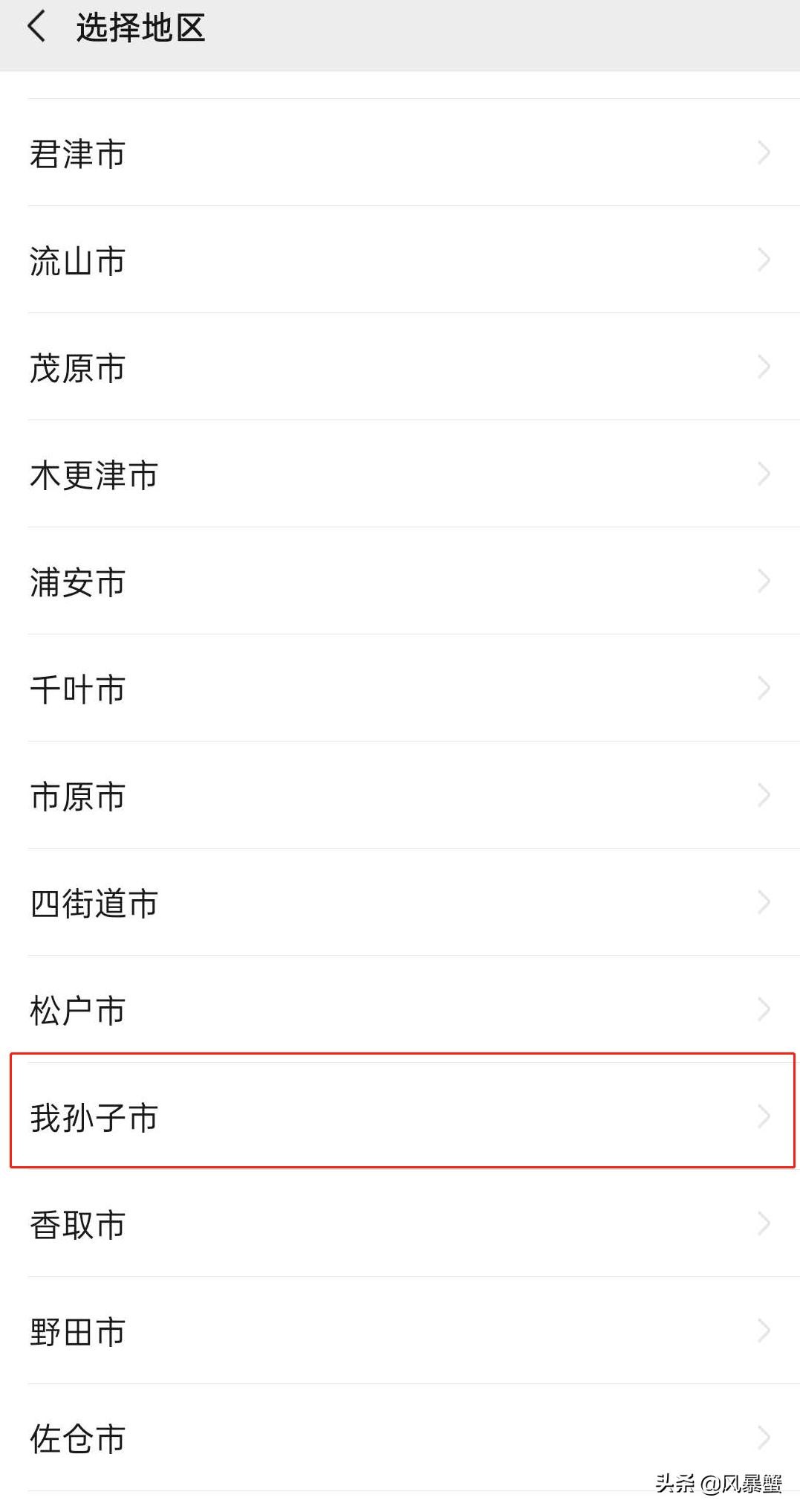 选择日本后,进入地区选择,我们找到千叶县 ,然后滑到最下面,找到 我孙子市。
