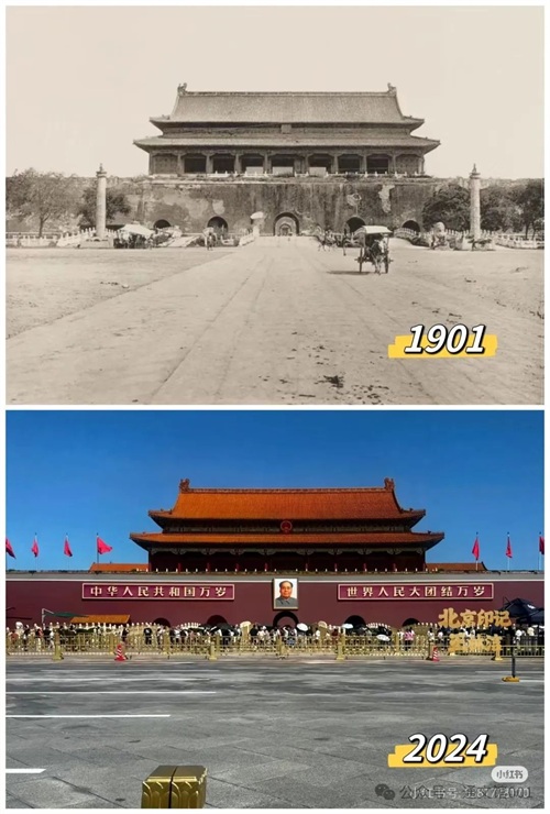 1950年将天安门两侧的华表和石狮子分别向两侧平移了6米,这也就是为什么大家看现在的华表和老照片中的华表位置不一样的原因。