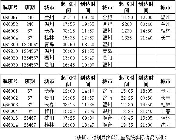 大众网·海报新闻青岛11月8日讯(记者 蒋甜)2019年冬春航季伊始,青岛航空温州机场进出港新增温州=青岛、温州=合肥航班,恢复温州=兰州、温州=长春、温州=桂林及温州=贵阳等航班。同时长春、沈阳两地新增长春=济南=贵阳、长春=温州=桂林、沈阳=烟台=桂林航线。