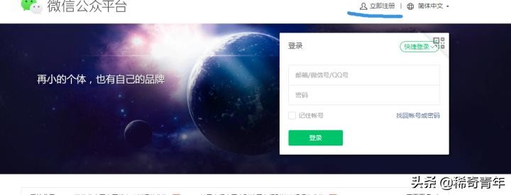 进入之后点击右上方的注册,注册个人订阅号,如果你是企业也可以注册服务号,企业号等。(我个人是非常喜欢公众号这句话——再小的的个体,也有自己的品牌。)