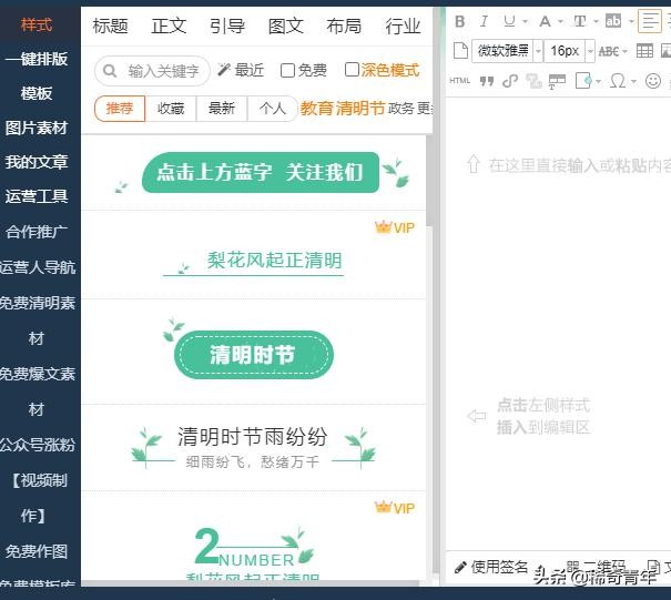 关于排版,建议新人使用一些软件,秀米,135,365,蚂蚁等编辑器,有一键排版等操作,便于上手。