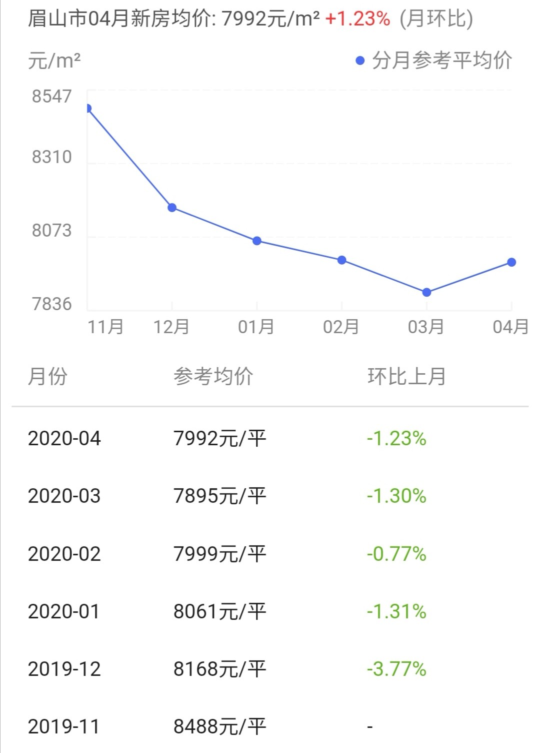 中国主要地级市房价-眉山篇 2021年房价变化趋势