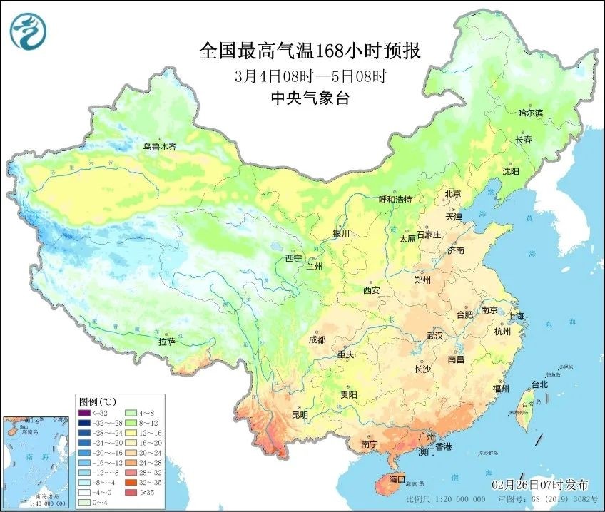周四(3月2日):多云转晴,北风转南风3~4级,0~8℃;