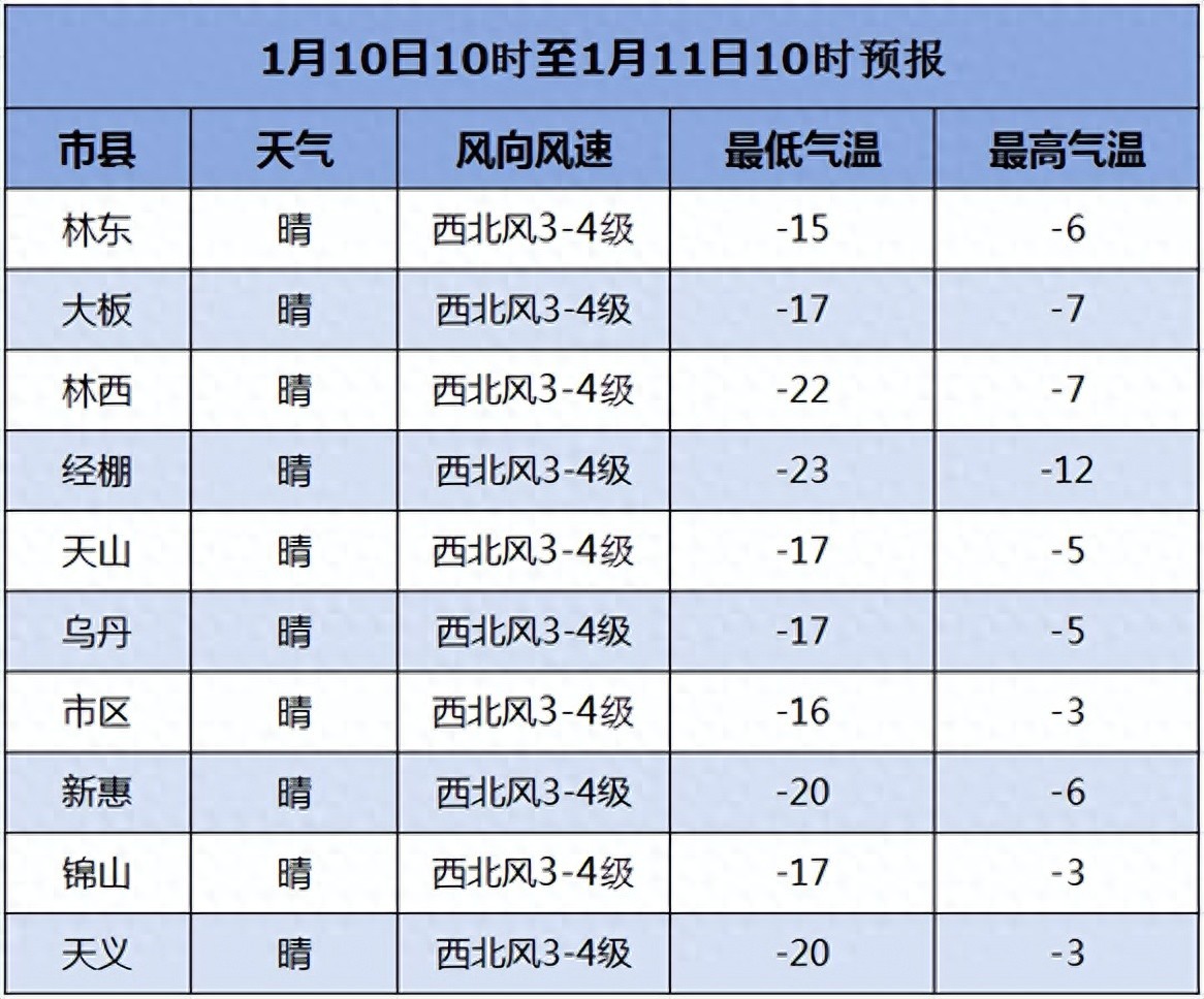 最低气温:-16℃ 北部:-17℃