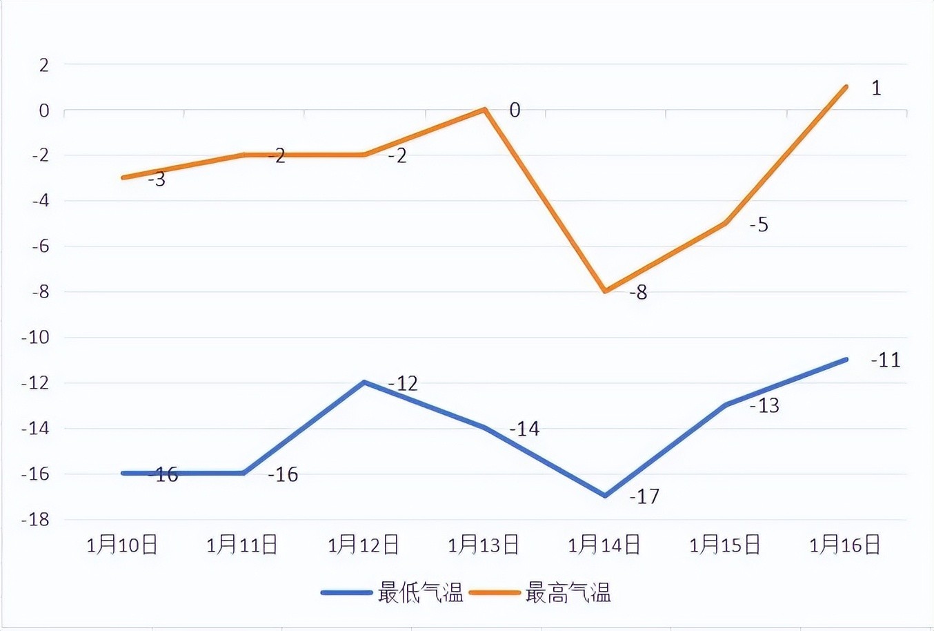 最低气温:-14℃ 北部:-16℃