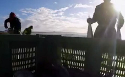 自80年代当地最后的食品加工厂关闭以来,在过去五年内,这里的渔业捕捞量从平均一个季节3000吨,下降到75吨至300吨。因为野生三文鱼数量太多,已经影响到野生龙虾的繁衍,所以当地渔民以50美分(约合3.5元)一公斤的价格出售三文鱼,用作龙虾饵料。图为当地渔民捕捞三文鱼。