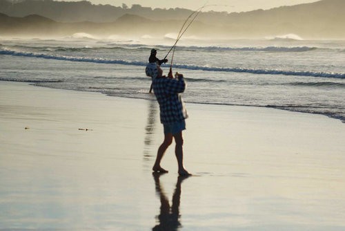 西澳渔业发展局目前正在致力于让野生三文鱼走进人们的餐桌,他们已经试行了在小学推广这种未得到充分利用的鱼类,教育学生接受三文鱼。学吃、学做三文鱼。图为海滩上的钓鱼者。