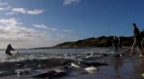 图为成群结队的三文鱼从巴斯海峡远赴而来到Parry海滩。