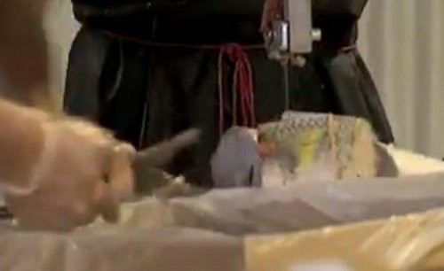 图为澳大利亚当地厨师在宰杀三文鱼。