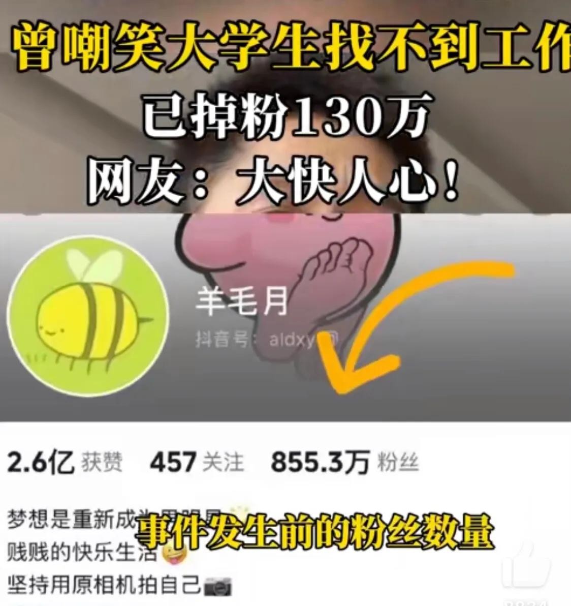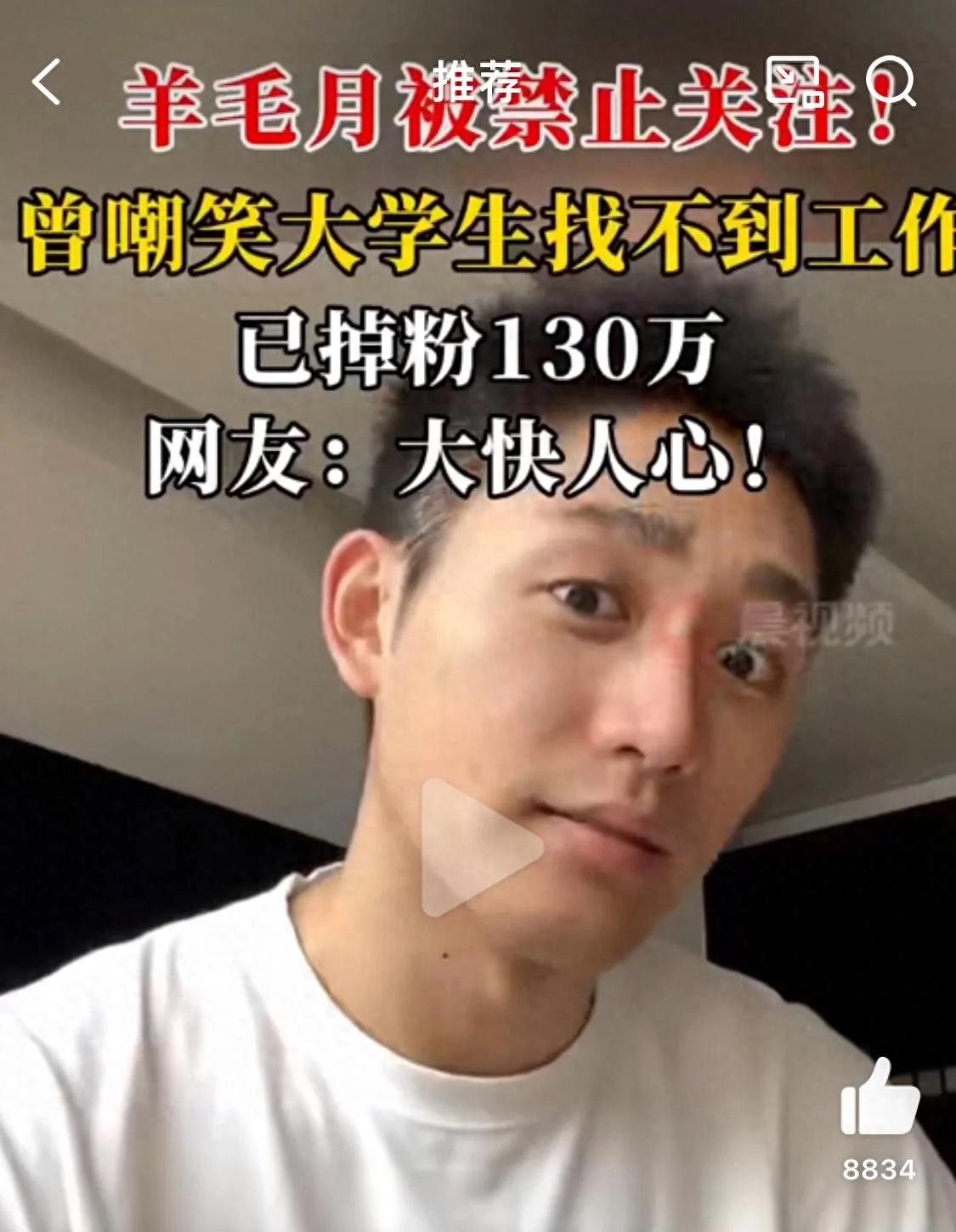 消息在社交媒体上炸开了锅,网友发现博主“羊毛月的账号被禁止关注”。就在该博主曾经以犀利嘲讽大学生找不到工作的言论引发热议之后,这位网红号骤然跌粉严重,截止目前,羊毛月账号的掉粉数量已经超过近130万!这背后的故事似乎是一部由玩笑和讽刺交织而成的社会剧情短片。羊毛月曾经的视频,如嘲笑大学生找不到工作,曾一度引起大量关注。但在他的视频里暴露的问题在现实生活中日益显现。就业难、工作不平等等话题开始频繁被提及,于是他的影响力被放大数倍,短时间内急速流失了一批忠实的粉丝。