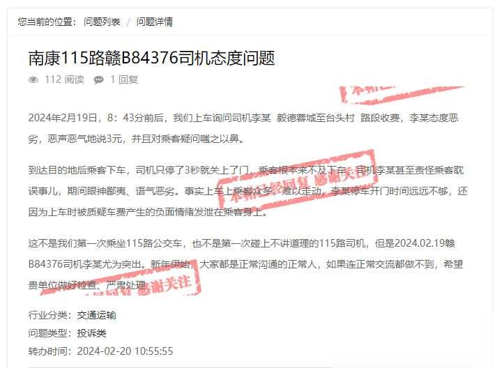 所幸有关部门看在眼里,听在耳里,迅速给出了回应和处理。他们查了监控,确认了部分投诉属实。赣州115路公交车的司机吴某平,就因为态度不友好,被公司罚了款,还停班学习。哎呀,这下可闹大了,不过至少给了大家一个交代。