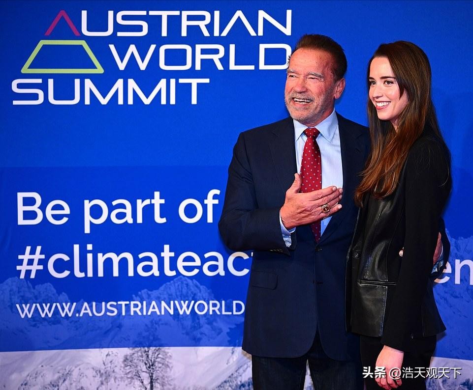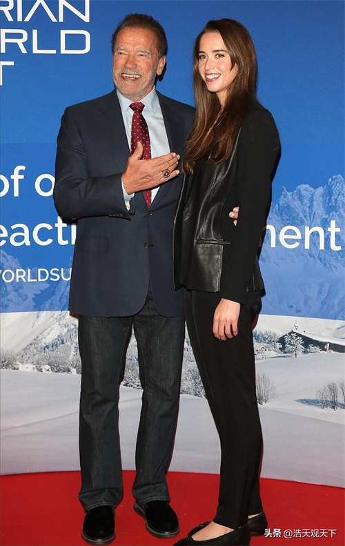 星期四(2023年1月19日)晚上,75岁的阿诺德·施瓦辛格在奥地利基茨比厄尔气候峰会期间,搂着他的31岁的漂亮女儿克里斯蒂娜·施瓦辛格参加慈善晚宴。