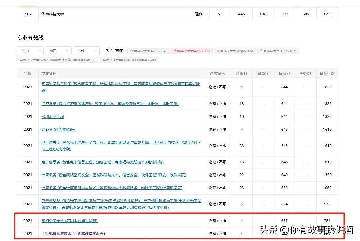 比如华中科技计算机启明本硕博实验班 到了前几百名!