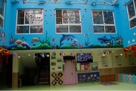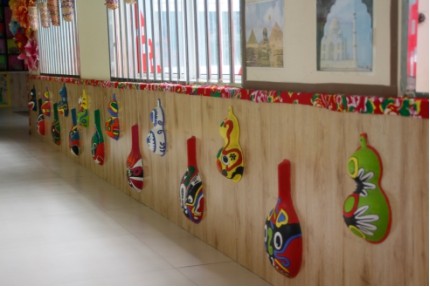 正如园长所说,幼儿园共有三层楼,每层都有不同的文化诠释,如第一层中,满满的中国风让孩子们从小体会到中华文化的博大精深、厚重历史。