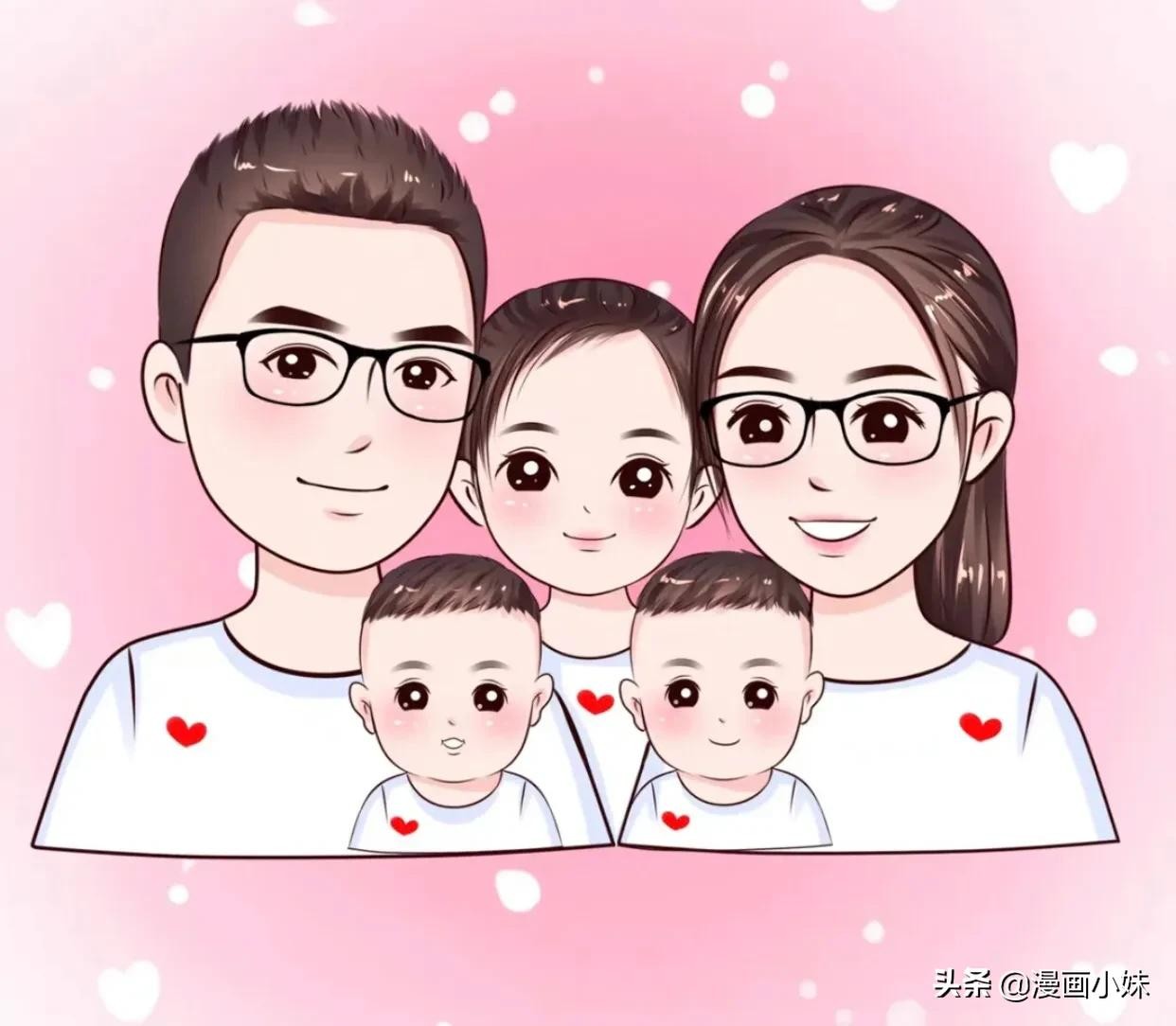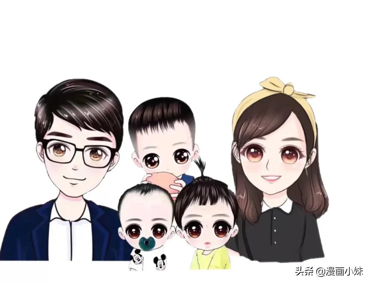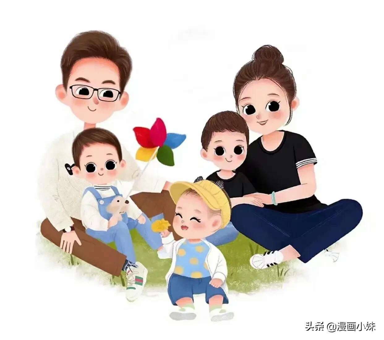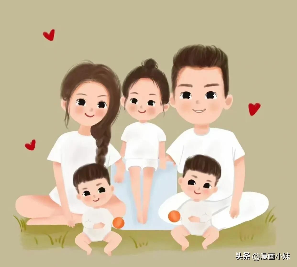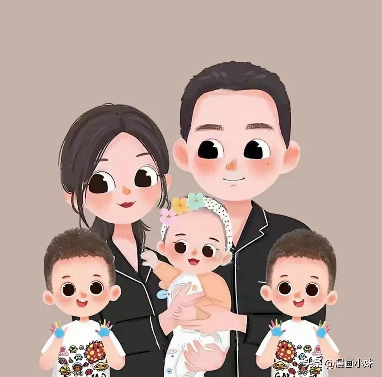 你们心心念念的一家五口头像来了,一家人坐在一起,好幸福