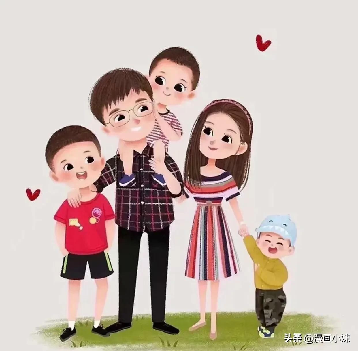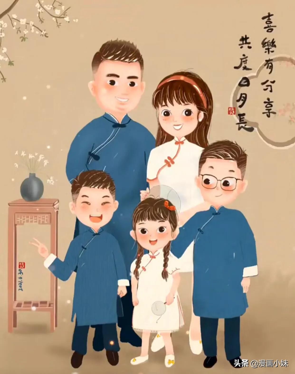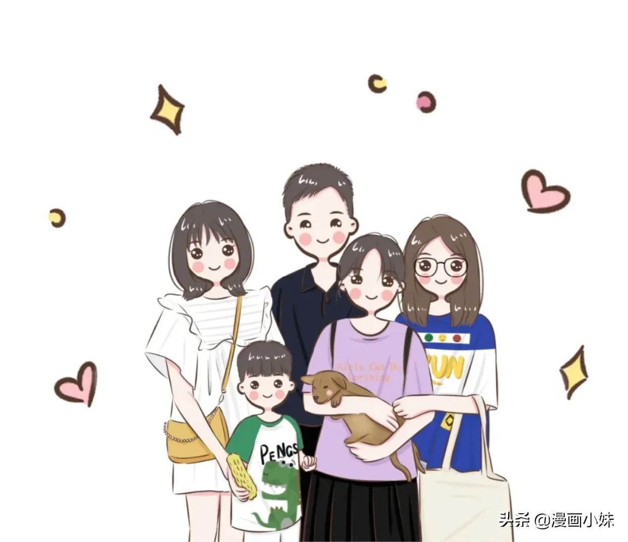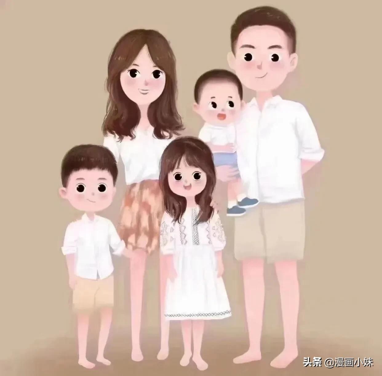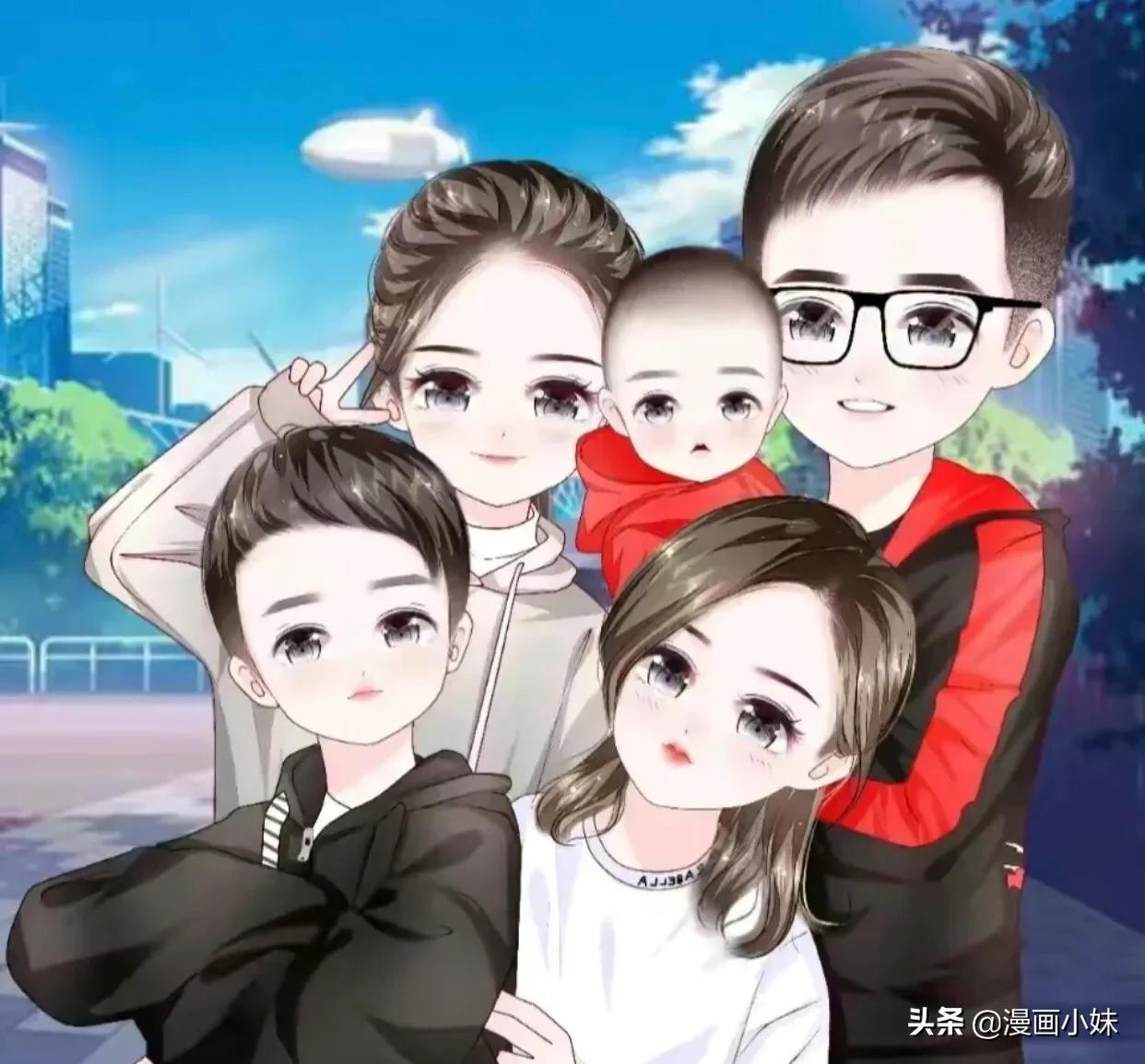 你们心心念念的一家五口头像来了,一家人坐在一起,好幸福