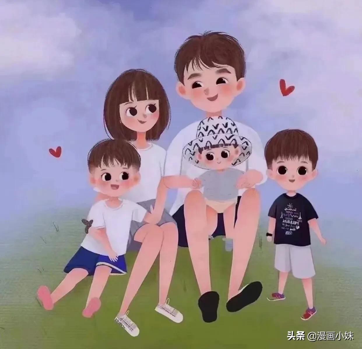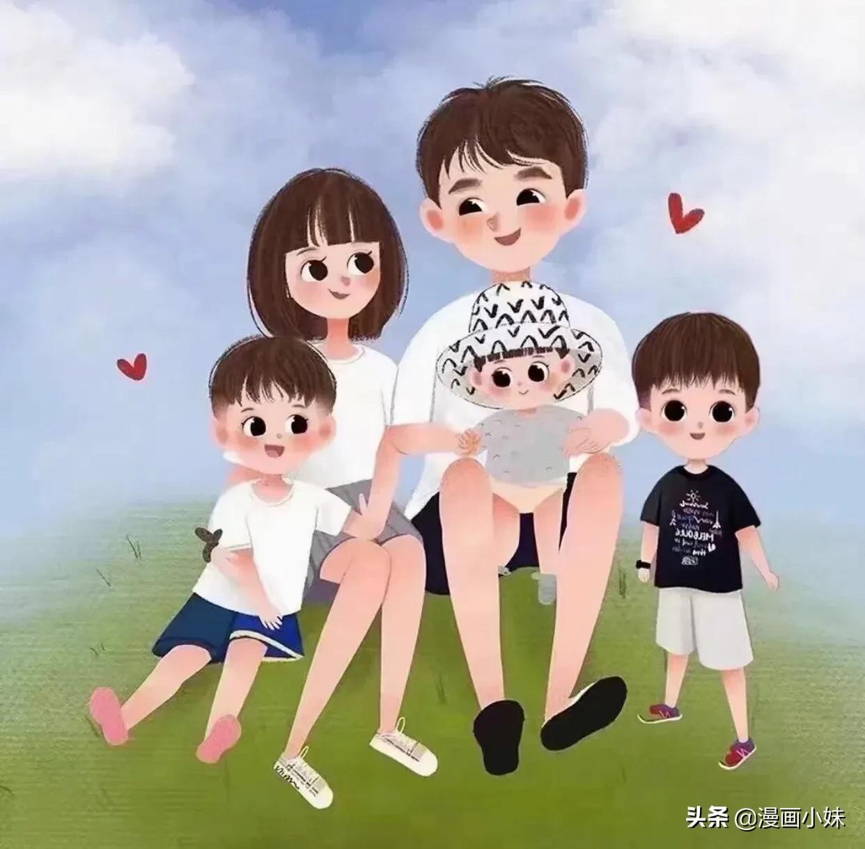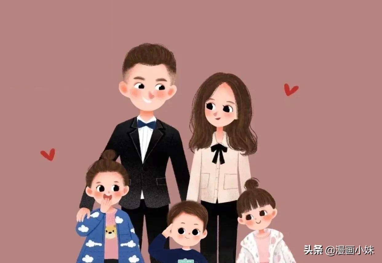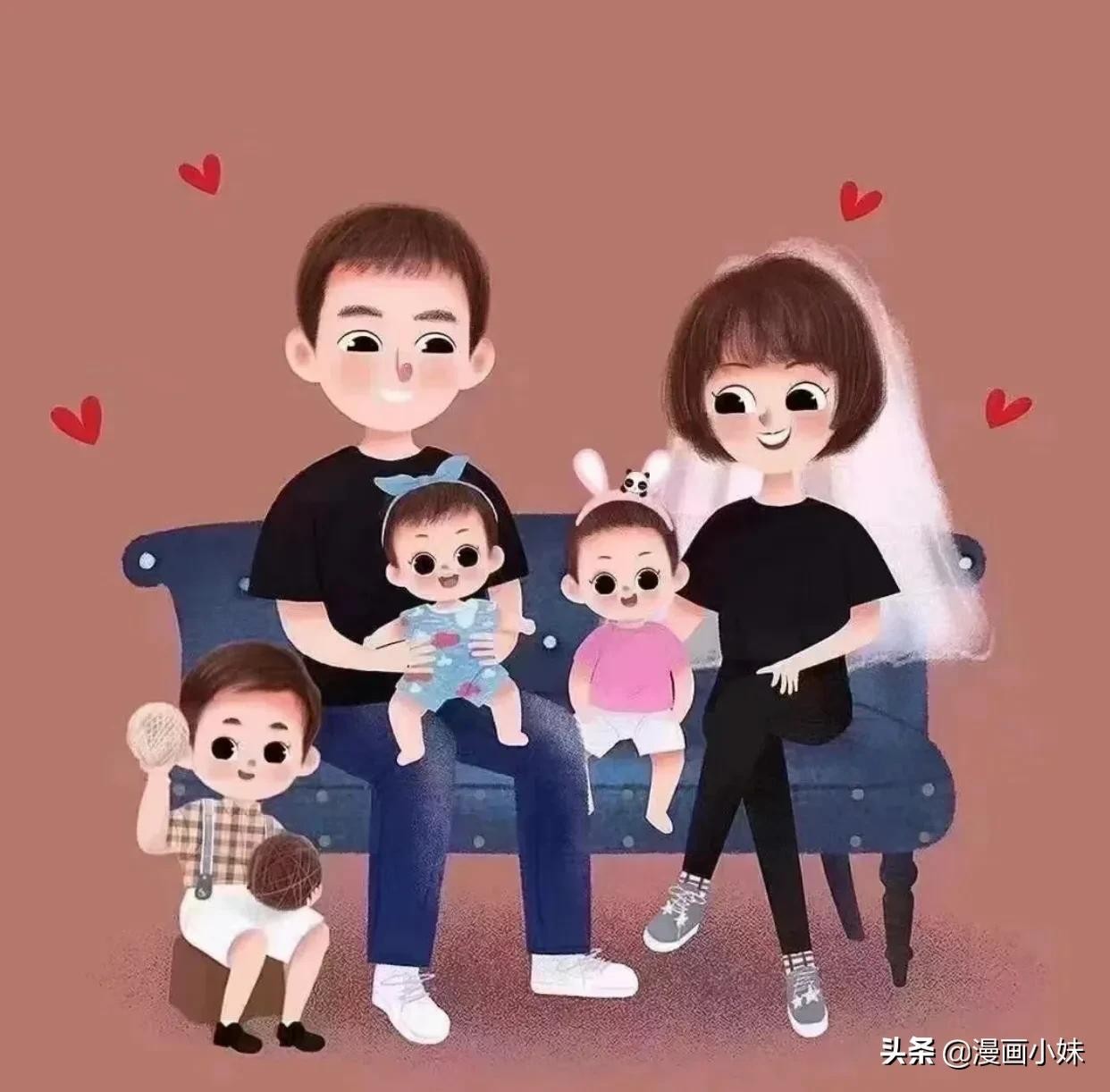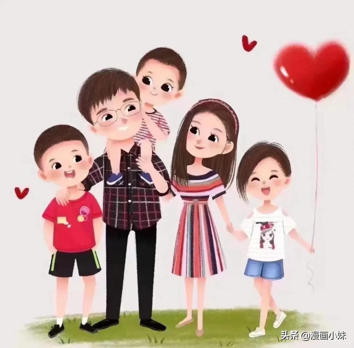 你们心心念念的一家五口头像来了,一家人坐在一起,好幸福